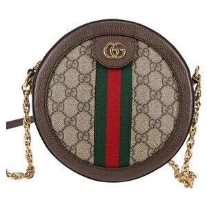 GUCCI GG Marmont Web Sherry Line Chain Bag PVC Beige Gold 550618 Auth 131980M