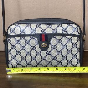 GUCCI GG Ophidia Sherry Line Navy Leather Grey Canvas Crossbody Bag Vintage