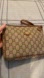 This clutch is vintage and in vintage condition. The canvas is beautiful and I don’t see any problems with it whatsoever. The corners have some exposed piping but is totally fine and not presenting a problem and it also blends in well. The zipper is zippy! The hardware is faded some. The top of the strap is separated, but it can be either sewn back together or glued back together. Easy fix for cobbler. Actually, the corners can be fixed by a cobbler as well. I would carry it just as it is. It is very beautiful, but not perfect. Please see the video and the pictures for exact condition. It has GG PLUS monogrammed all over the canvas! Price reflects callouts. 100% authentic.