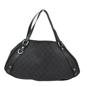 GUCCI GG Pattern Abbey Shoulder Bag Leather canvas Black SHW Italy 76KB625