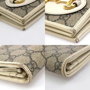 GUCCI GG Pattern Horsebit Bifold Wallet Supreme Leather Beige White GHW 02EG213