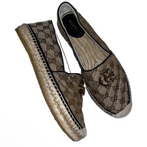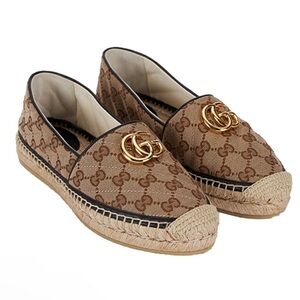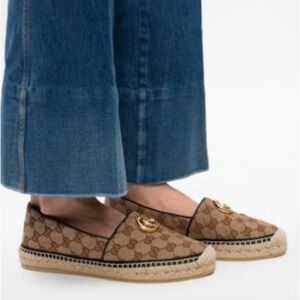GUCCI GG Pilar Logo Canvas Espadrilles EU 39 Flats NWOB Neutral Tan slip on new