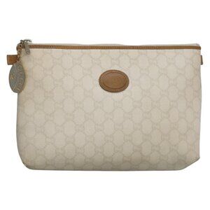 GUCCI GG Plus Supreme Clutch Bag PVC White Auth bs28632