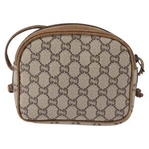 GUCCI GG Plus Supreme Shoulder Bag PVC Leather Beige Gold Auth th6320