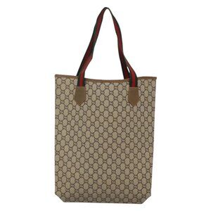 GUCCI GG Plus Supreme Web Sherry Line Tote Bag PVC Beige Red Green Auth ep9518