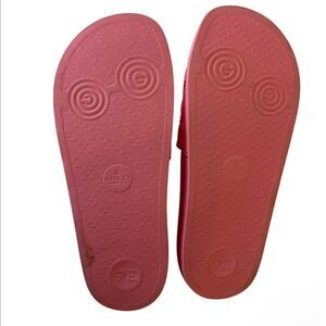 GUCCI GG Rose Pink Rubber Flat Slides is gentle worn. Minor wear on the rubber please see all photos. Made in Italy. Authentic slides with serial number in stamped inside it’s very very to bend and take the picture. Stylish Gucci slides in vibrant pink. Features iconic logo design. Perfect for casual wear. Size: 38