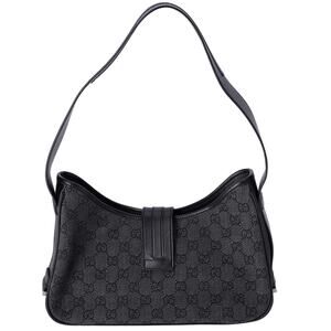 GUCCI GG Shoulder Bag 92736 Black Jacquard Leather Gray