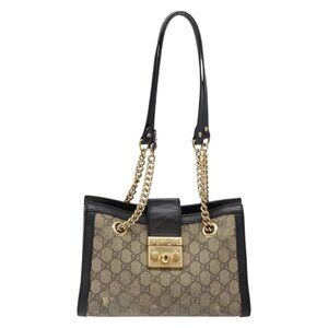GUCCI GG Supreme Chain Shoulder Bag PVC Beige Gold 498156 Auth bs28269