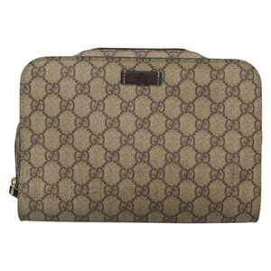 GUCCI GG Supreme Clutch Bag PVC Beige 201755 Auth