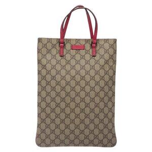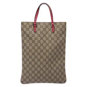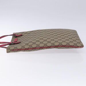 GUCCI GG Supreme Hand Bag PVC Beige Silver Auth