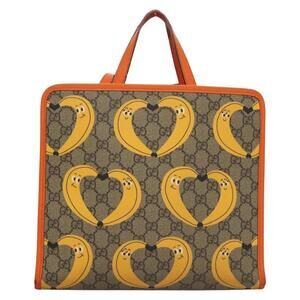 GUCCI GG Supreme Hand Bag Pvc Beige Silver