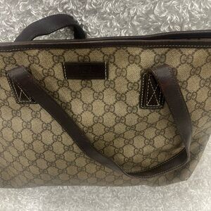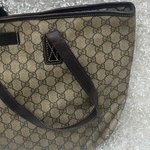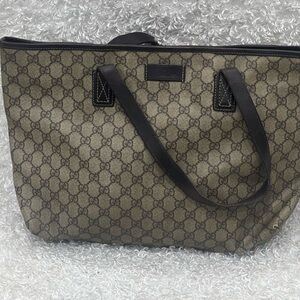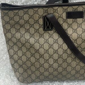 GUCCI GG Supreme Monogram Medium Zippered Shopping Tote Dark Brown. Pre-owned. Minor signs of wear. See pictures