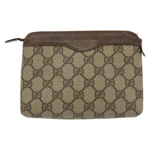 GUCCI GG Supreme Pouch PVC Beige 89 01 020 Auth 138143