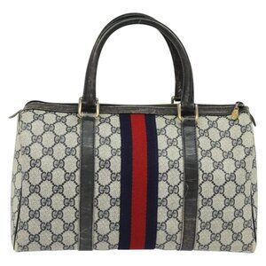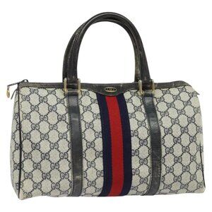 GUCCI GG Supreme Sherry Line Boston Bag PVC Navy Gold 24 012 3842 Auth 133308