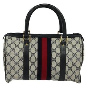 GUCCI GG Supreme Sherry Line Boston Bag Pvc Navy Gold