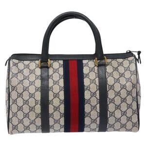 GUCCI GG Supreme Sherry Line Boston Bag Pvc Navy Red Gold