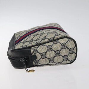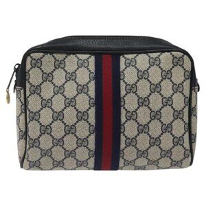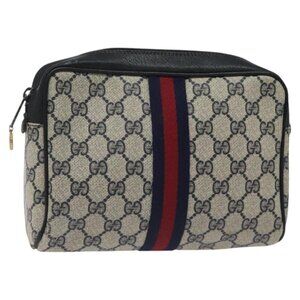 GUCCI GG Supreme Sherry Line Clutch Bag PVC Navy Gold