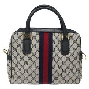 GUCCI GG Supreme Sherry Line Hand Bag PVC Leather Navy Red
