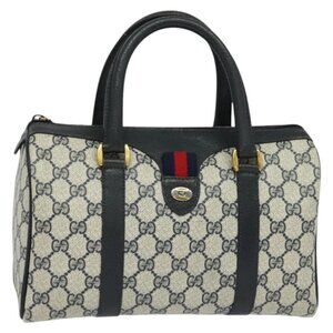 GUCCI GG Supreme Sherry Line Hand Bag PVC Navy Gold Red 40 02 006 Auth sw1342