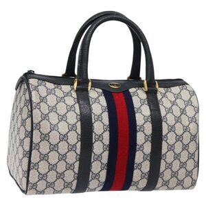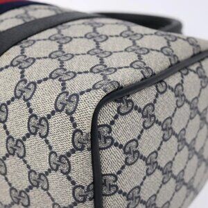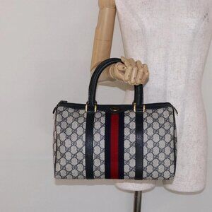 GUCCI GG Supreme Sherry Line Hand Bag PVC Navy Gold Red 58 02 007 Auth 139106