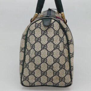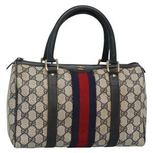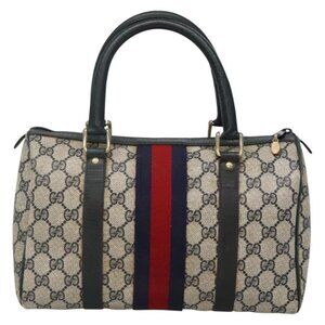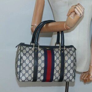 GUCCI GG Supreme Sherry Line Hand Bag PVC Navy Gold Red Auth 134690