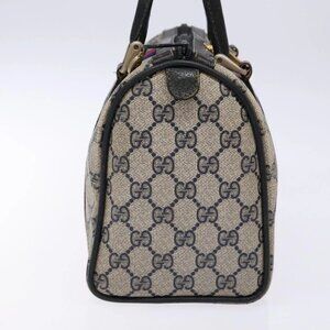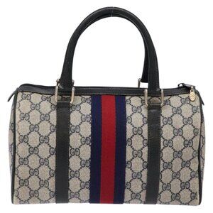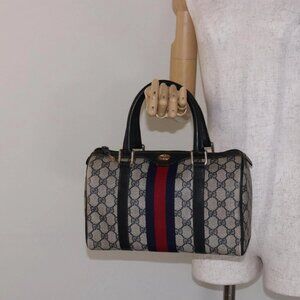 GUCCI GG Supreme Sherry Line Hand Bag PVC Navy Gold Red Auth 135604