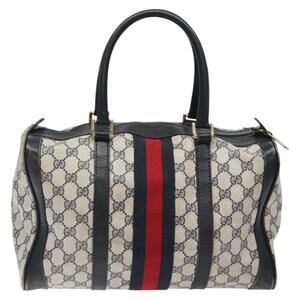 GUCCI GG Supreme Sherry Line Hand Bag Pvc Navy Red