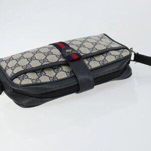 GUCCI GG Supreme Sherry Line Shoulder Bag PVC Navy Gold 10 02 055 Auth ep11283
