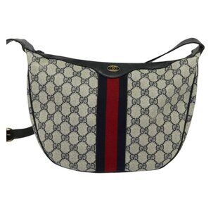 GUCCI GG Supreme Sherry Line Shoulder Bag PVC Navy Gold 10 2 8840 Auth 127091