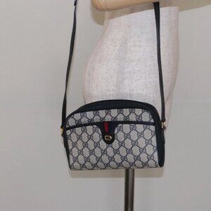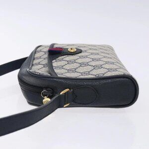 GUCCI GG Supreme Sherry Line Shoulder Bag PVC Navy Gold 116 02 089 Auth 133031