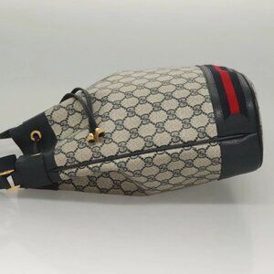 GUCCI GG Supreme Sherry Line Shoulder Bag PVC Navy Gold 41 02 085 Auth 132131