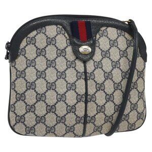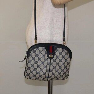 GUCCI GG Supreme Sherry Line Shoulder Bag PVC Navy Gold 68 02 047 Auth ep9524
