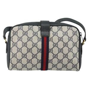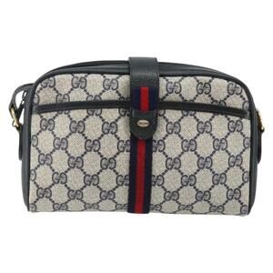 GUCCI GG Supreme Sherry Line Shoulder Bag PVC Navy Gold 89 02 055 Auth 143138
