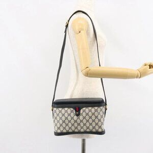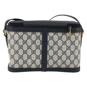 GUCCI GG Supreme Sherry Line Shoulder Bag PVC Navy Gold 904 02 069 Auth 148394