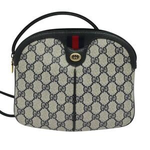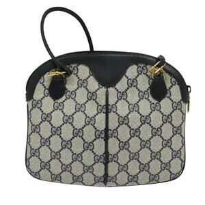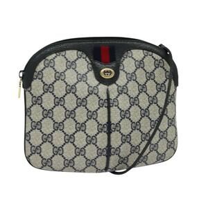 GUCCI GG Supreme Sherry Line Shoulder Bag Pvc Navy Gold 904 02 047