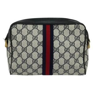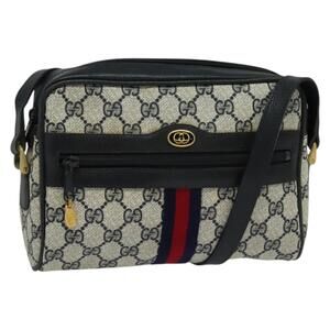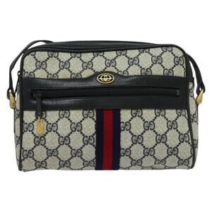 GUCCI GG Supreme Sherry Line Shoulder Bag Pvc Navy Gold Red
