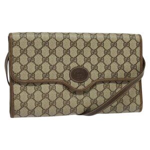 GUCCI GG Supreme Shoulder Bag PVC Beige Gold
