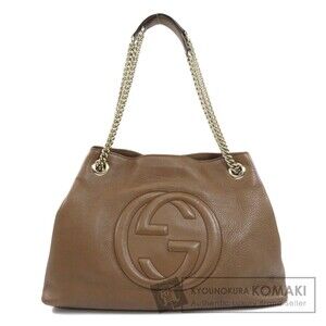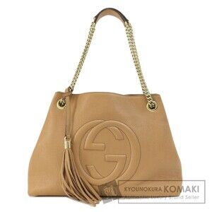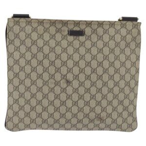 GUCCI GG Supreme Shoulder Bag PVC Beige Gold