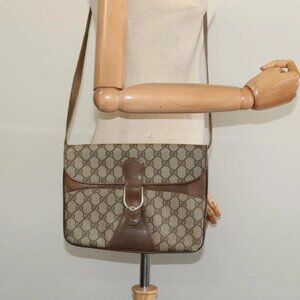 GUCCI GG Supreme Shoulder Bag PVC Beige Gold Auth
