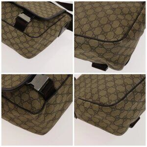 GUCCI GG Supreme Shoulder Bag PVC Beige Silver
