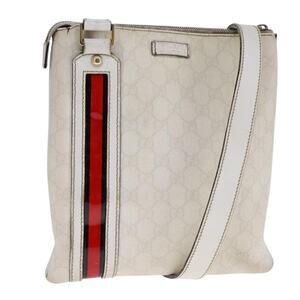 GUCCI GG Supreme Shoulder Bag Pvc White Red Gold