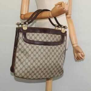 GUCCI GG Supreme Tote Bag PVC Beige Gold Auth