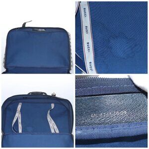 GUCCI GG Supreme Travel Case PVC Leather Navy Gold Auth