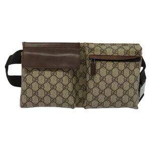 GUCCI GG Supreme Waist bag PVC Beige Silver