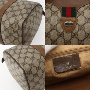 GUCCI GG Supreme Web Sherry Line Bag PVC Beige Gold 111 02 007 Auth bs29491