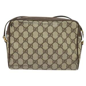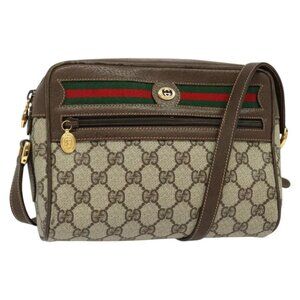 GUCCI GG Supreme Web Sherry Line Bag PVC Beige Gold 119 02 087 Auth 136367