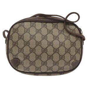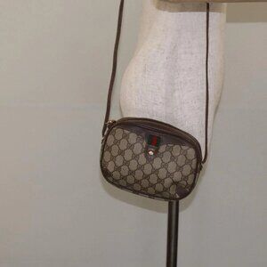 GUCCI GG Supreme Web Sherry Line Bag PVC Beige Gold 156 02 066 Auth 129814