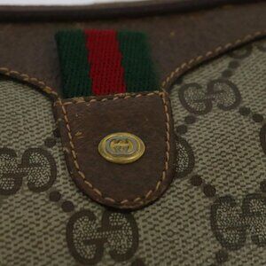 GUCCI GG Supreme Web Sherry Line Bag PVC Beige Gold 156 02 066 Auth ki5606
