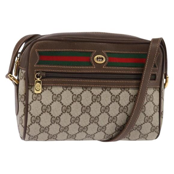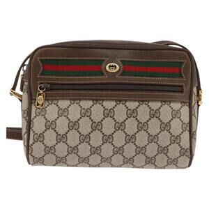 GUCCI GG Supreme Web Sherry Line Bag PVC Beige Gold 56 02 087 Auth 143328