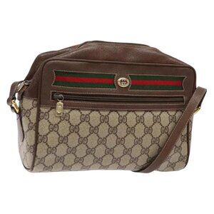 GUCCI GG Supreme Web Sherry Line Bag PVC Beige Gold 56 02 088 Auth 137908
